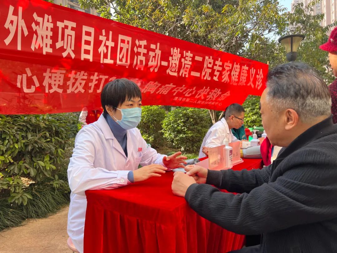 11月20日是我國(guó)心梗救治日,為更好地科普急救知識(shí),提高群眾對(duì)心梗嚴(yán)重性與防治重要性的認(rèn)知,普及急性心肌梗死的規(guī)范化救治流程,當(dāng)天上午,市二院院長(zhǎng)王瑾帶領(lǐng)心血管內(nèi)科、急診科等專家義診團(tuán)隊(duì),到源匯區(qū)昌建外灘小區(qū)舉行“心梗撥打120,胸痛中心快救命”義診活動(dòng)。