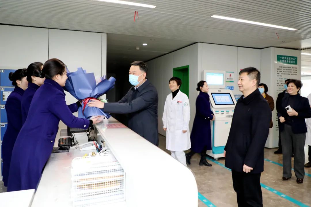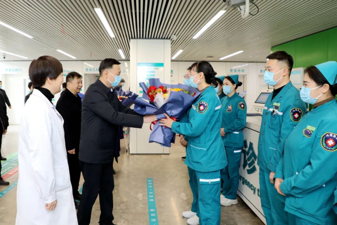 朱黎明一行先后到急診科、病人服務(wù)中心、影像科、皮膚科、中醫(yī)科、小兒心血管神經(jīng)血液科,小兒呼吸內(nèi)科看望慰問醫(yī)護人員,他表示,廣大醫(yī)護人員始終奮戰(zhàn)在醫(yī)療救治的最前線,承擔(dān)著光榮而艱巨的職責(zé)使命,為護佑全市人民健康提供了堅實保障,在新春佳節(jié)到來之際,謹代表市衛(wèi)健委向辛勤奉獻的市二院全體醫(yī)護人員表達誠摯的感謝和新年的祝福。