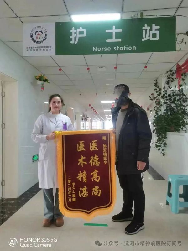 3月4日一大早,一名患者家屬懷著一顆無(wú)比感恩的心來(lái)到了漯河市精神病醫(yī)院精神四科,感謝我院孫亞南醫(yī)生及全體醫(yī)護(hù)人員,并送上一面錦旗,他的患者是一名在校學(xué)生,在家不出門,不與人溝通,緊張、害怕,嚴(yán)重影響到日常生活,不能正常上學(xué),經(jīng)門診收住院,入院后,孫醫(yī)生耐心詢問(wèn)患者的病情,根據(jù)患者的癥狀進(jìn)行病情評(píng)估,制定了詳細(xì)的治療方案,通過(guò)一個(gè)多月的治療,患者癥狀明顯改善。能與人交流了,臉上也露出了久違的笑容。家屬對(duì)醫(yī)院的診療和服務(wù)水平非常滿意!