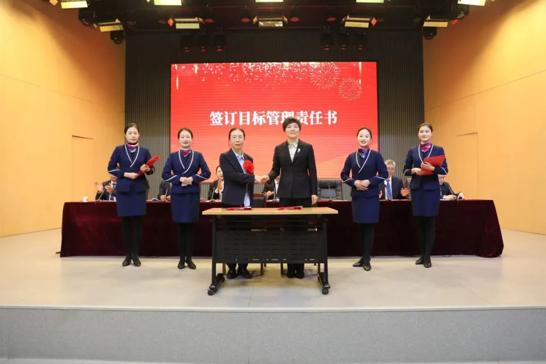 表彰結(jié)束后,黨委書記魏松與黨支部書記代表--兒科黨支部書記郭先鋒簽訂了2024年黨建和黨風(fēng)廉政建設(shè)目標責任書,院長王瑾與科主任代表--婦產(chǎn)科主任井紅鴿簽訂了2024年科室目標管理責任書,醫(yī)院用兩類“軍令狀”轉(zhuǎn)化為新的一年工作的“指揮棒”和“動員令”,精準指引各科室新一年發(fā)展方向。