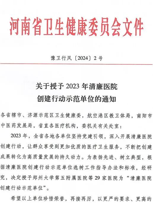 創(chuàng)建清廉醫(yī)院 守護(hù)人民健康——漯河醫(yī)專二附院被授予2023年省級(jí)清廉醫(yī)院創(chuàng)建行動(dòng)示范單位