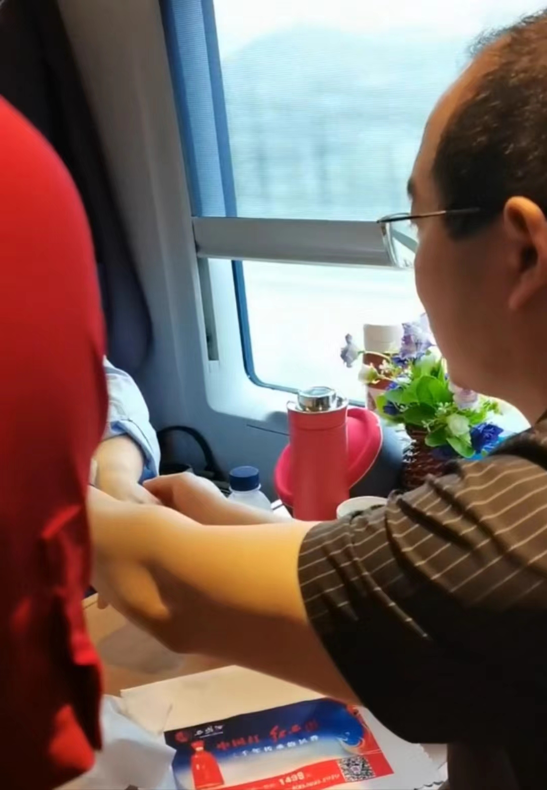 看到保潔員的情況有所好轉(zhuǎn),一旁的列車長也跟著劉雅普一行前往到他們的車廂,還給每個人送了一瓶水表示感謝,并要求留下他們的聯(lián)系方式。