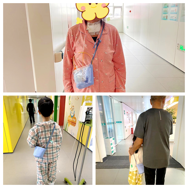 如何改進解決上述問題,小兒外科護士長盧清麗在工作中帶領全體護士積極尋找解決方案。經(jīng)過頭腦風暴,最后設計出了一種“多功能引流器固定裝置”,該固定裝置外形美觀,采用一半淺藍色防水布,一半pvc透明材料,便于觀察引流液的顏色、性質(zhì)和引流量,保護患者隱私和尊嚴,且引流裝置不易晃動,不影響日常走路、活動,外出攜帶和穿脫方便。既有效地保持了引流管通暢,促進疾病恢復,又減輕患者負擔,提高患者舒適度。且清洗消毒方便,可以重復使用,符合綠色環(huán)保的理念,深受患者及家屬的高度好評。