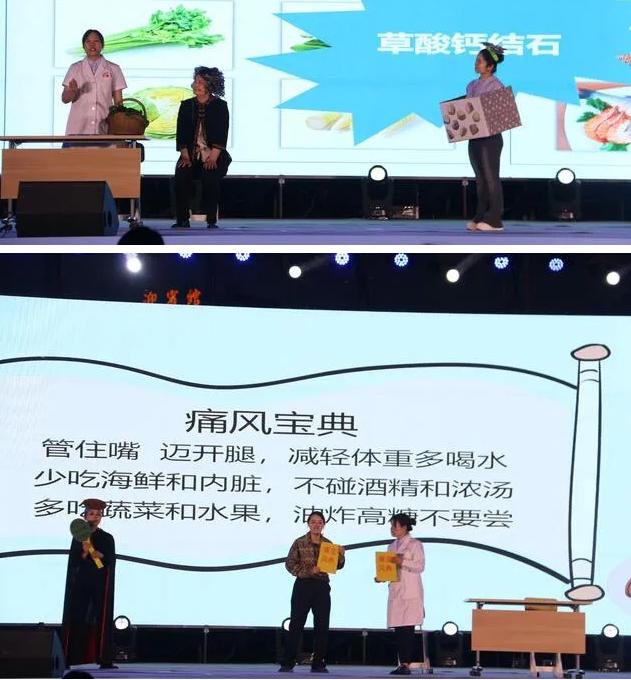現場醫(yī)護人員展示的《與“食”俱進 “石”不再來》《燃燒我的卡路里》《過量飲酒 “肝”敗下風》《惹不起的痛風君》《當胸痛來臨時》《美麗的陷阱》等作品,形式新穎,采用情景劇、順口溜、快板等生動活潑、詼諧有趣的表演方式,圍繞健康生活方式、營養(yǎng)健康知識、慢性病防治等主題,進行通俗易懂、生動形象地講解,贏得現場評委和線上線下觀眾一致好評。