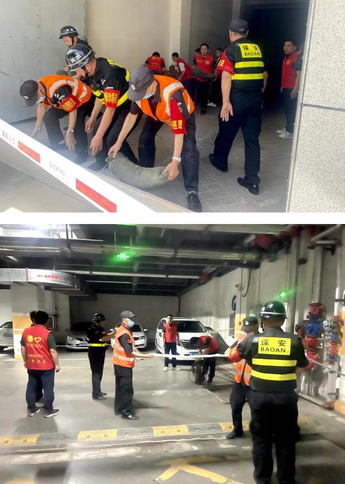 演練模擬漯河市區(qū)出現(xiàn)持續(xù)強(qiáng)降雨天氣,由于短時(shí)間降雨量過(guò)大,因管網(wǎng)排水不暢,造成雨水倒灌,致使地下車(chē)庫(kù)、配電間等重點(diǎn)地下空間區(qū)域進(jìn)水。現(xiàn)場(chǎng)值班發(fā)現(xiàn)險(xiǎn)情,報(bào)告防汛總指揮,總指揮迅速啟動(dòng)防汛搶險(xiǎn)應(yīng)急預(yù)案,組織防汛搶險(xiǎn)預(yù)備隊(duì)進(jìn)行搶險(xiǎn),其他各組各司其職,同心協(xié)力處置險(xiǎn)情。