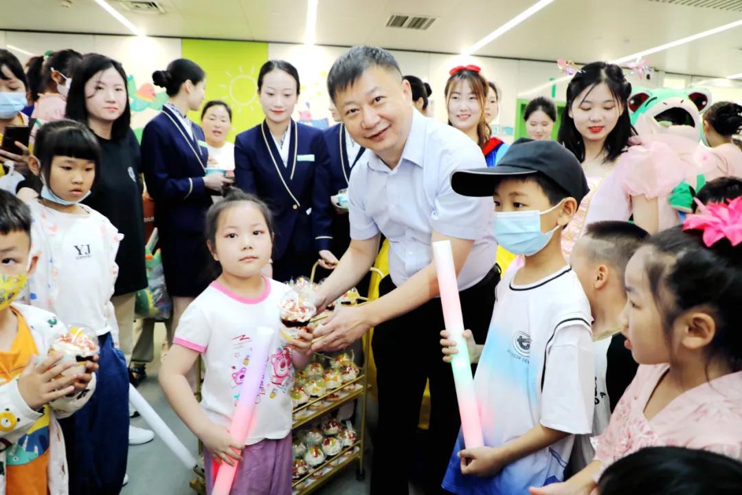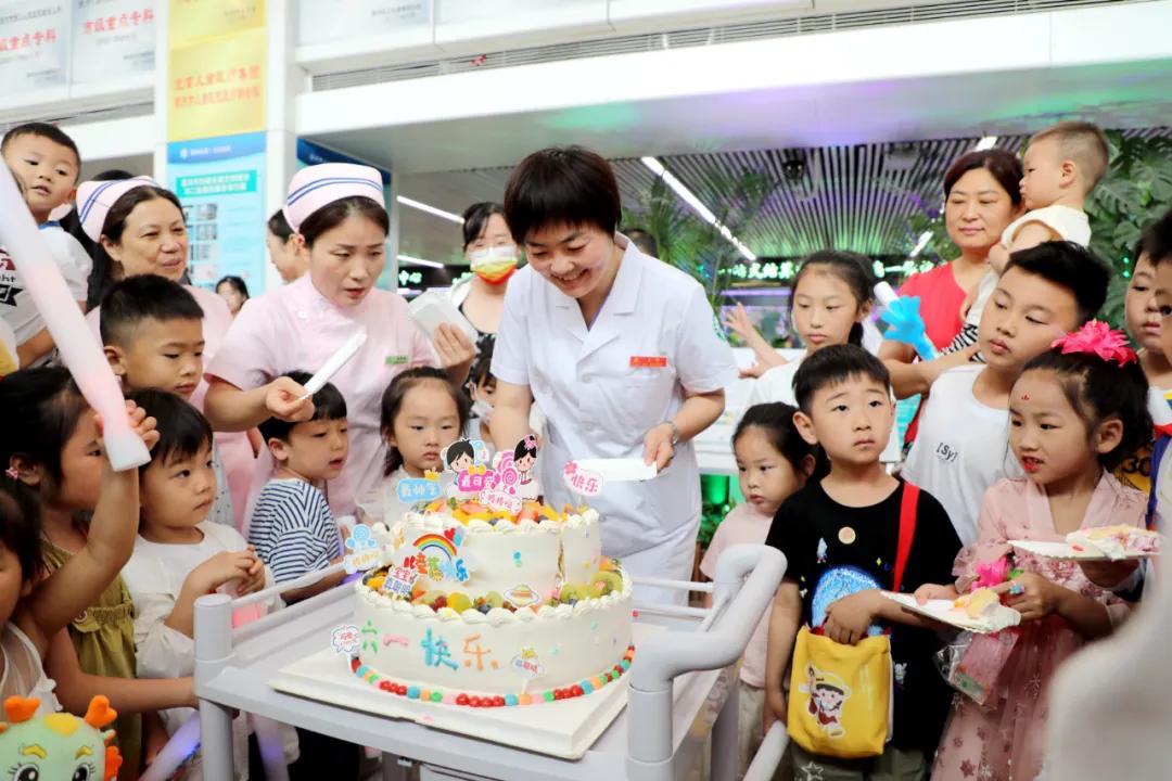 在門診大廳,黨委書記魏松、院長(zhǎng)王瑾與兒科專家、護(hù)士長(zhǎng)、孩子們一起切下節(jié)日蛋糕,并代表全院醫(yī)護(hù)人員對(duì)孩子們表示衷心的祝福,希望孩子們健康快樂成長(zhǎng)?,F(xiàn)場(chǎng),醫(yī)護(hù)人員化身白雪公主、花仙子、小黃人、網(wǎng)紅青蛙與小朋友們熱情互動(dòng),友好交流,派發(fā)精心準(zhǔn)備的節(jié)日禮物。
