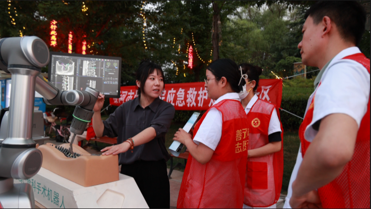 除了提供義診服務(wù)外,醫(yī)療專家志愿者們還進(jìn)行了“天璣Ⅱ”骨科機(jī)器人展示,向市民介紹了該機(jī)器人在數(shù)字智能醫(yī)療領(lǐng)域的應(yīng)用、技術(shù)特點(diǎn)、臨床優(yōu)勢(shì)以及實(shí)際案例等方面內(nèi)容,將優(yōu)質(zhì)的醫(yī)療資源和先進(jìn)的醫(yī)療技術(shù)帶到基層老百姓身邊。