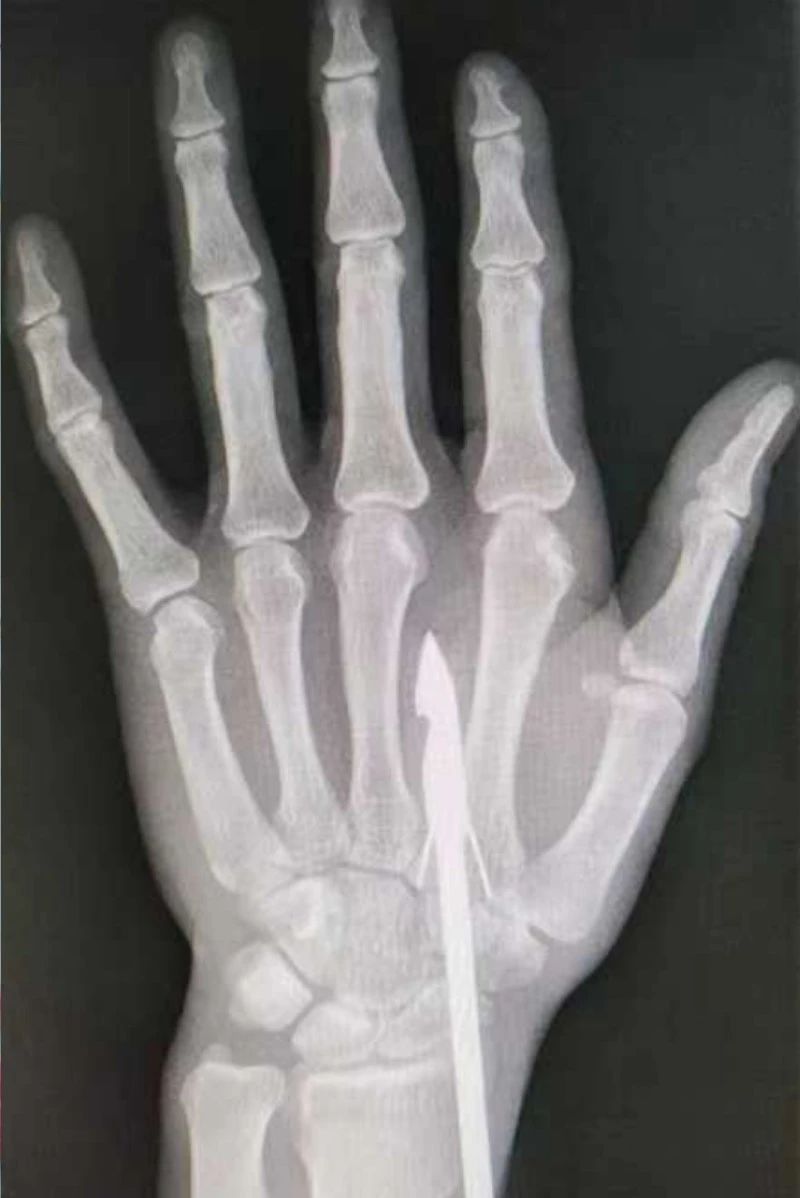 時間緊迫,每一秒的流逝都可能對傷者的手部功能造成不可逆的損害。接診醫(yī)生代彭威,迅速對傷者進行了初步檢查。他注意到,魚鉤已經(jīng)深深嵌入皮膚,情況遠比表面看起來復(fù)雜。沒有絲毫猶豫,立即安排了X線檢查以確認魚鉤的位置及傷及范圍,以及急診化驗檢查以評估患者的整體狀況。