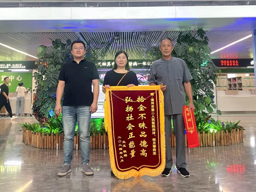 后來,經(jīng)醫(yī)院相關(guān)工作人員,根據(jù)錢包里面的信息,多方渠道尋找,最終與失主王先生取得了聯(lián)系,核對確認(rèn)身份后,將錢包物歸原主。失主連聲感謝,對醫(yī)務(wù)人員拾金不昧的精神連連點贊,并特意送來寫有拾金不昧品德高,弘揚社會正能量的錦旗一面。