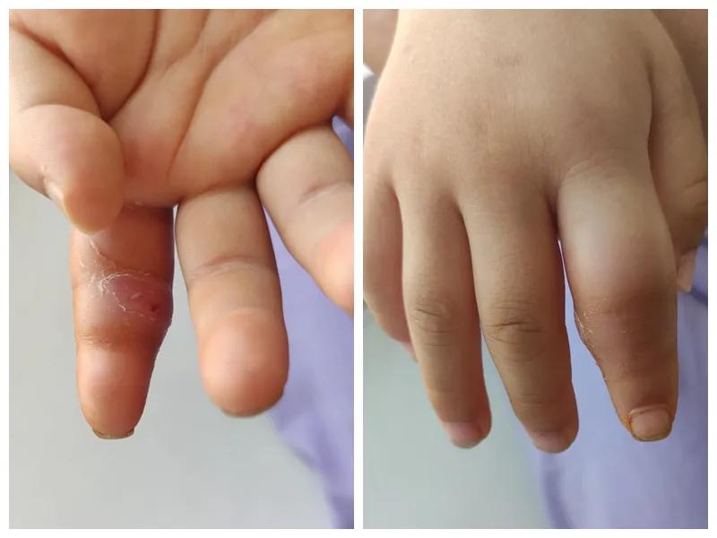 據(jù)了解,患兒月月家住臨潁縣,受傷當(dāng)天,月月像往常一樣,跟著家人一起去玉米地玩耍。然而玩著玩著,月月大聲哭了起來,把家人嚇了一跳,月月媽媽最先反應(yīng)過來,沖過去看見孩子的右手食指被玉米葉子割傷了,見傷口不是特別深,只是流了點(diǎn)血,便也沒當(dāng)回事兒,繼續(xù)干手里的農(nóng)活,直到孩子一直哭著喊疼,便帶著月月在當(dāng)?shù)蒯t(yī)院簡單處理后就回家了。不幸就這樣發(fā)生了……