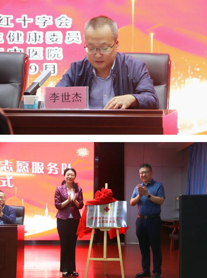 李世杰宣讀《漯河市紅十字會關于同意成立漯河市中醫(yī)院紅十字志愿服務隊的批復》文件。孫潁華、王向良為漯河市中醫(yī)院紅十字志愿服務隊揭牌。孫潁華向漯河市中醫(yī)院紅十字志愿服務隊授旗。漯河市中醫(yī)院紅十字志愿服務隊代表李強進行表態(tài)發(fā)言并作出承諾,將充分發(fā)揮紅十字志愿者的優(yōu)勢,為更多需要幫助的人提供醫(yī)療援助和志愿服務。