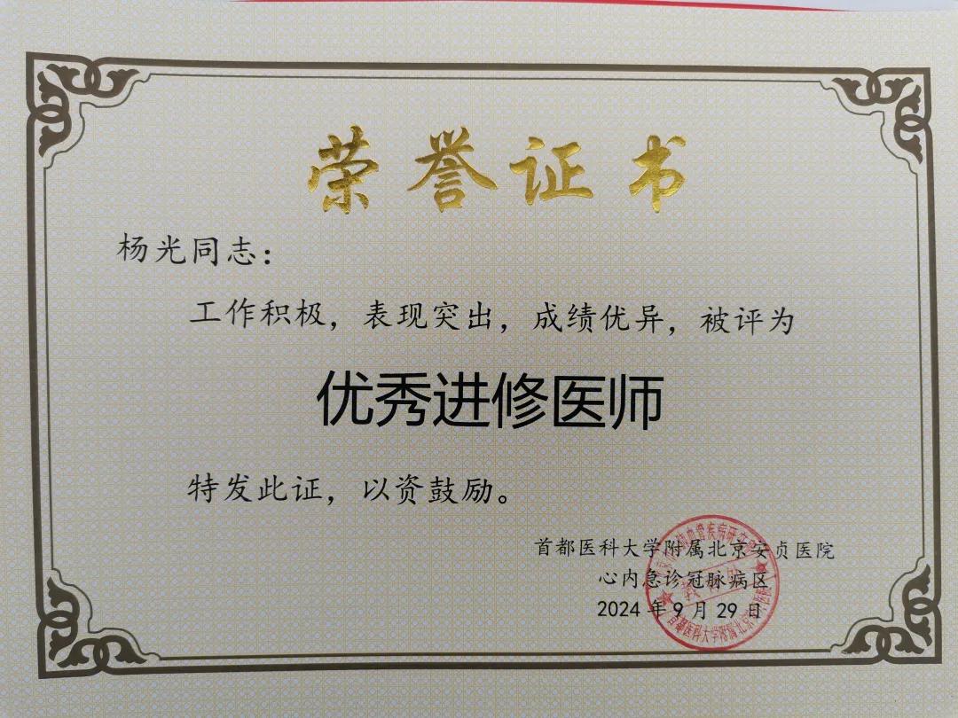近日,市二院心血管內(nèi)科主治醫(yī)師楊光在首都醫(yī)科大學(xué)附屬北京安貞醫(yī)院完成為期一年的進(jìn)修學(xué)習(xí),現(xiàn)順利結(jié)業(yè)、學(xué)成歸來,因在進(jìn)修期間表現(xiàn)優(yōu)異,被評為北京安貞醫(yī)院“優(yōu)秀進(jìn)修醫(yī)師”榮譽(yù)稱號,不僅為醫(yī)院全體青年醫(yī)師樹立了榜樣,同時(shí)也給醫(yī)院心內(nèi)科專業(yè)發(fā)展注入新的活力,將所學(xué)轉(zhuǎn)化為生產(chǎn)力,把新知識、新技術(shù)傳播開來,讓更多患者受益。
