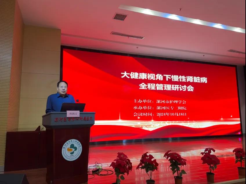 會議開始,曹鵬克副院長致辭并對參加此次會議的專家、同仁的到來表示熱烈歡迎和由衷的感謝!他指出,作為醫(yī)務工作者,我們應積極倡導健康的生活方式,提高公眾對慢性腎臟病的認識和預防意識。