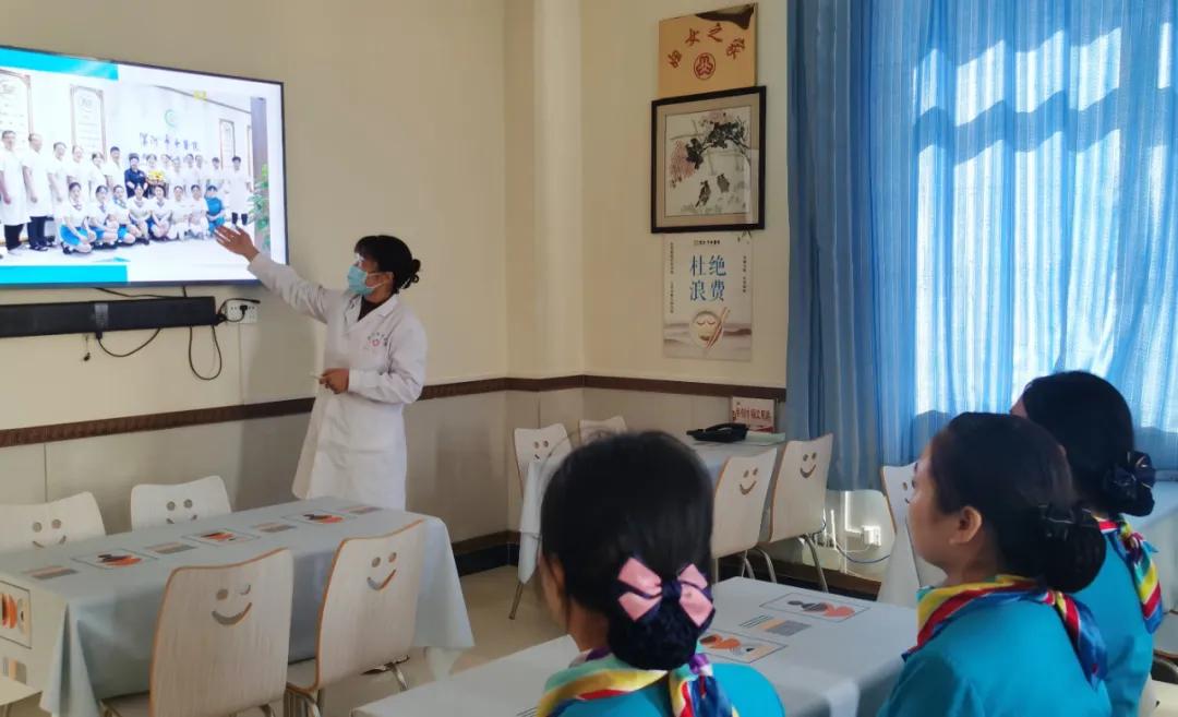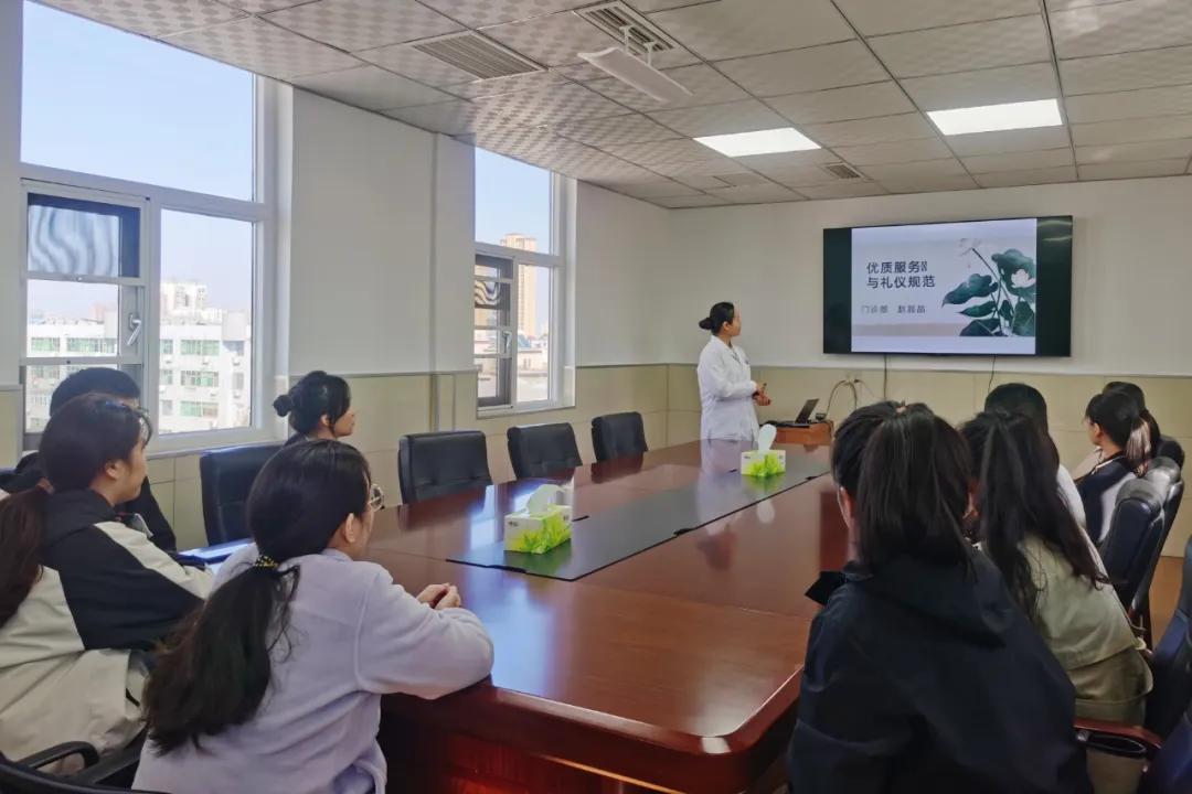 趙晶晶護士長對見習人員進行《優(yōu)質(zhì)服務和禮儀規(guī)范》的培訓,提升見習人員的形象素質(zhì)。