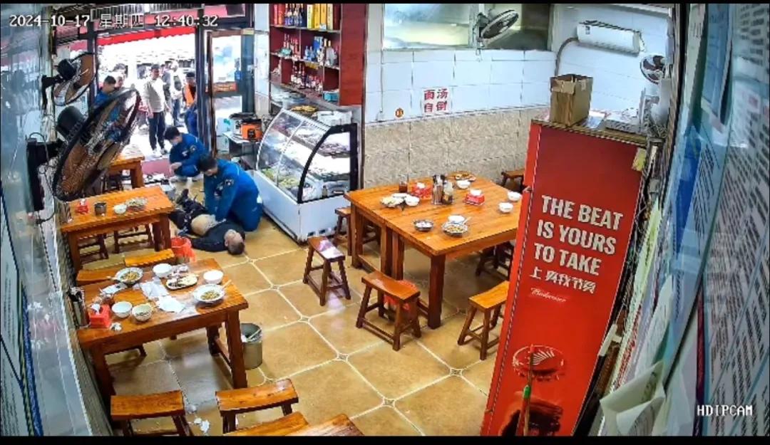 10 月 17 日中午 12 時 30 分,市二院急診科警報鈴聲響起,馬路街有一位中年男性就餐時突然暈倒、昏迷不醒、生命垂危,急需緊急救治。接到出車命令后,120指揮中心及急診科醫(yī)生王磊與現(xiàn)場人員保持持續(xù)通話,遠(yuǎn)程指導(dǎo),為患者進(jìn)行心肺復(fù)蘇。與此同時,急救人員迅速行動,僅僅 3 分鐘就趕到了現(xiàn)場,快速評估后發(fā)現(xiàn)患者頸動脈搏動消失,無自主呼吸。