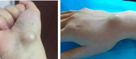 腱鞘囊腫的病因是長(zhǎng)期炎癥刺激、慢性勞損導(dǎo)致關(guān)節(jié)囊、韌帶、腱鞘中的結(jié)締組織發(fā)生退行性粘液性變性,從而形成囊性腫物?;颊叨酁榍鄩涯辏愿嘁?jiàn)。腱鞘囊腫常呈半球形,隆起于皮下,生長(zhǎng)緩慢,大小不一,一般不超過(guò)2cm,偶爾也可達(dá)8cm。囊腫大小與癥狀輕重?zé)o直接關(guān)系,而與囊腫張力有關(guān),張力越大,腫物越硬,疼痛越明顯。