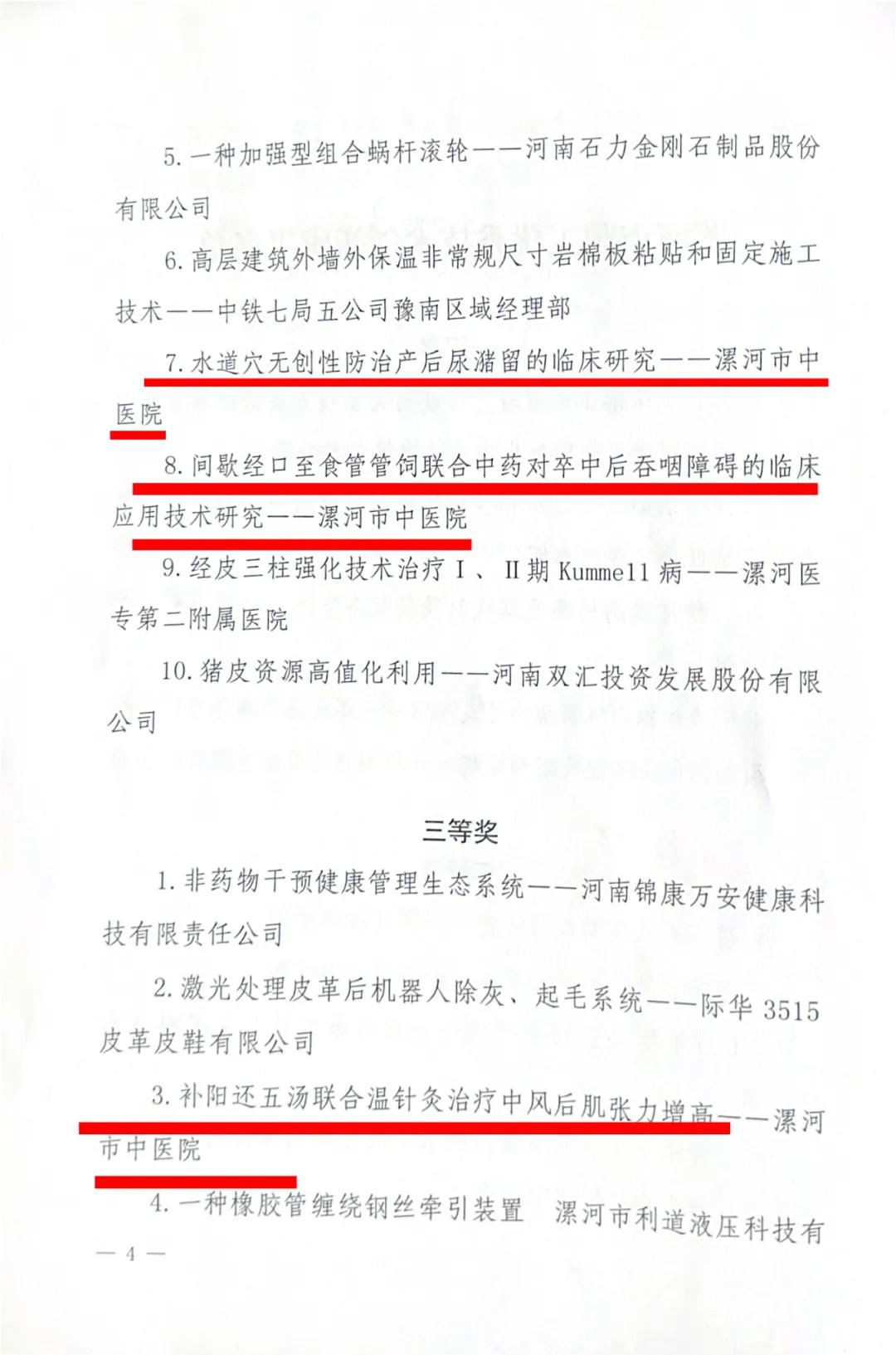 河市中醫(yī)院3個項目獲得漯河市職工優(yōu)秀技術創(chuàng)新成果獎項