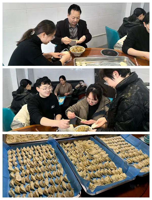 現(xiàn)場,歡聲笑語不斷。在醫(yī)院餐廳里醫(yī)護人員圍坐一桌,大家齊動手,搓面團、包餡料,共同了解冬至文化,投入包餃子的樂趣中。希望能讓在院治療的患者及其家屬感受到來自醫(yī)院的溫暖和關(guān)懷,讓值班的醫(yī)護人員也品嘗美味的餃子,感受到來自科室同事們的關(guān)愛,讓大家過上一個愉快,難忘的冬至。