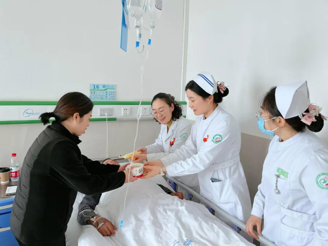 “祝大家早日康復(fù),冬至快樂!”“謝謝醫(yī)護人員,謝謝你們對我們的關(guān)心和問候。”病區(qū)里到處都能聽到醫(yī)護人員的問候和患者連連稱贊的道謝聲,到處洋溢著溫馨、祥和的氛圍。
