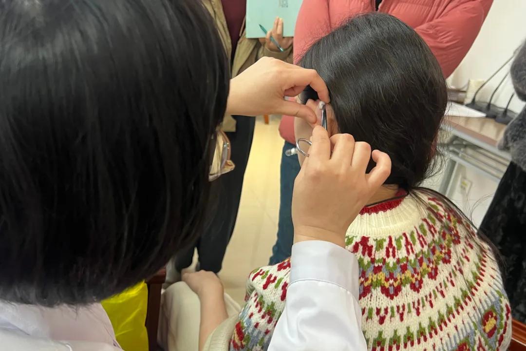 講座結(jié)束,付曉芳醫(yī)生通過(guò)“望、聞、問(wèn)、切”中醫(yī)四診了解了大家的身體健康狀況,為大家提供個(gè)性化的中醫(yī)指導(dǎo)和預(yù)防保健養(yǎng)生知識(shí)。針灸科護(hù)士長(zhǎng)張瑞根據(jù)大家個(gè)體特點(diǎn)進(jìn)行辨證施護(hù),為大家進(jìn)行耳穴壓豆、艾灸、刮痧等中醫(yī)特色療法體驗(yàn),受到大家一致好評(píng)。