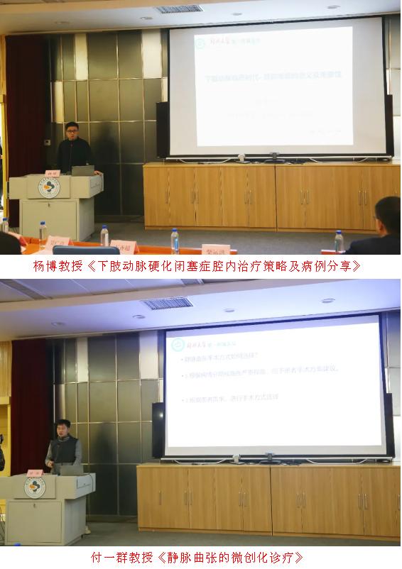 學術會上,宋燕教授、苗仁英教授、楊博教授、付一群教授、牛曉陽教授、劉衛(wèi)萍教授、劉玉峰教授、漯河醫(yī)專二附院神經(jīng)外科副主任振強教授、漯河醫(yī)專二附院急診外科副主任張曉光教授、漯河醫(yī)專二附院急診外科程書強教授等分別圍繞《頸動脈狹窄的指南解讀》《淺談頸動脈狹窄的外科治療一術式選擇的進階之路》《下肢動脈硬化閉塞癥腔內(nèi)治療策略及病例分享》《靜脈曲張的微創(chuàng)化診療》《VTE防控體系構(gòu)建及病例分享》《DVT的臨床護理要點》《頸動脈狹窄治療體會》《頸深淋巴-靜脈吻合術治療阿爾茨海默病》《下肢深靜脈血栓的診治》等為題,為現(xiàn)場血管外科同仁進行了精彩的學術報告。學術會上,與會觀眾積極圍繞相關課題向授課專家提問,并進行探討交流,現(xiàn)場始終充滿濃厚的學術氛圍。