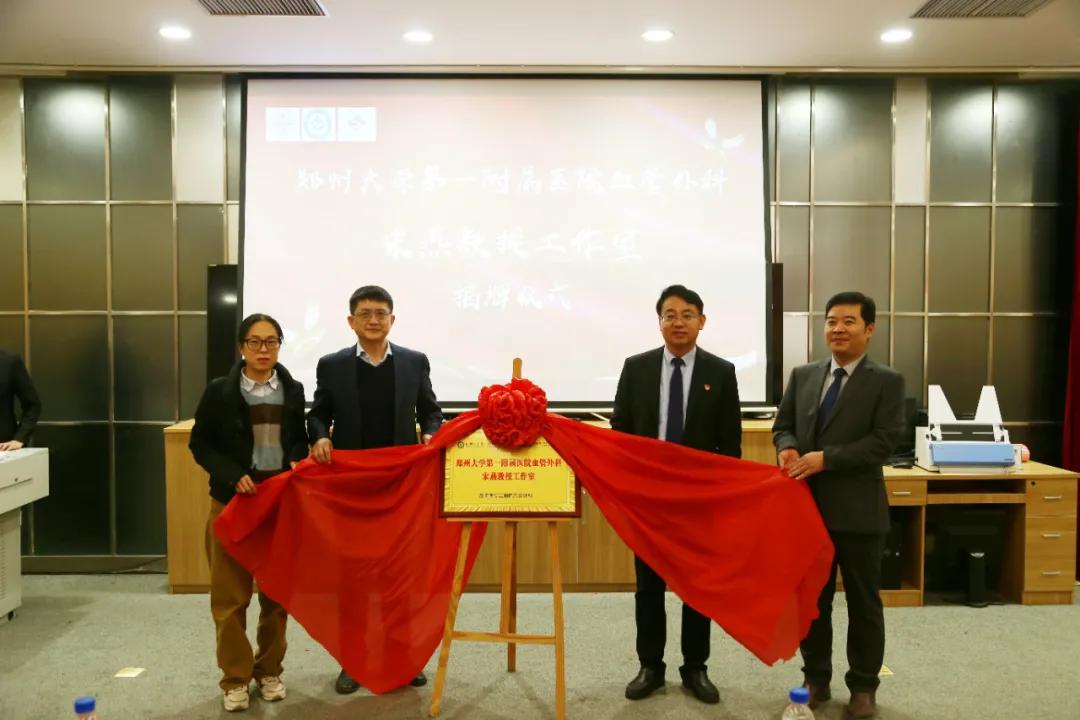 鄭州大學第一附屬醫(yī)院血管外科宋燕教授、鄭州大學第一附屬醫(yī)院血管外科劉衛(wèi)萍教授、漯河醫(yī)專二附院黨委書記柴運洪、漯河醫(yī)專二附院急診外科主任史永濤共同為鄭州大學第一附屬醫(yī)院血管外科宋燕教授工作室揭牌。