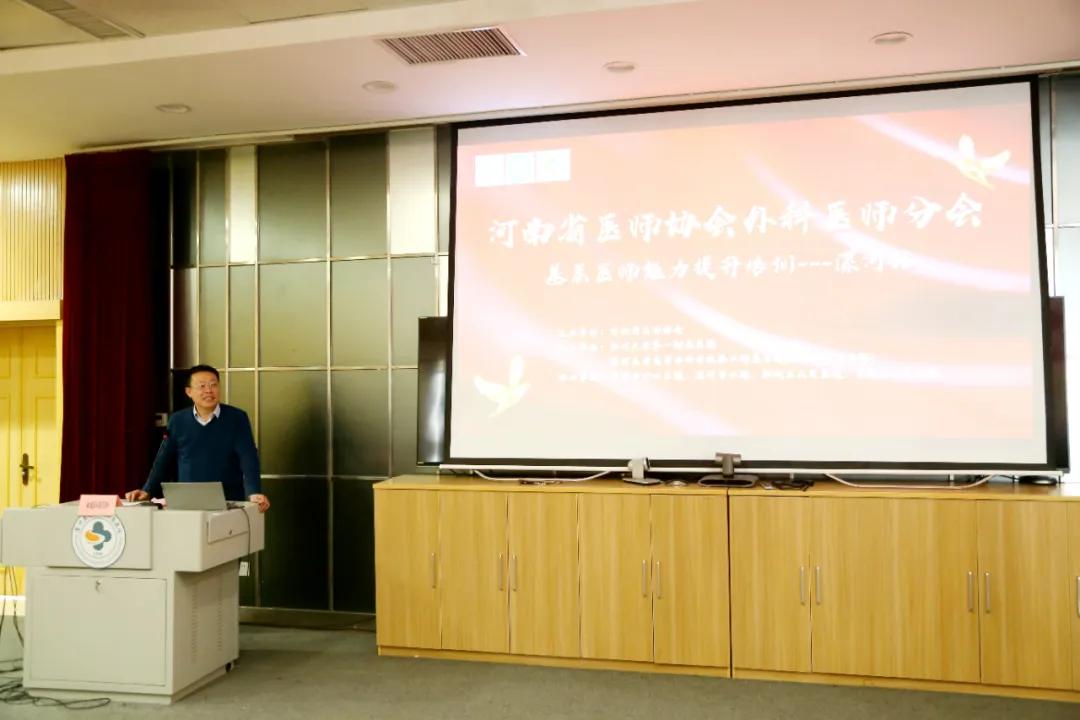 院黨委書記柴運洪在致辭中代表漯河醫(yī)專二附院向出席會議的各位專家教授表示熱烈的歡迎。他指出,血管外科作為一門新興學科,專注于診斷、治療和管理與血管系統(tǒng)相關的疾病和病變。隨著心血管疾病負擔的增加、血管疾病發(fā)病率的上升、技術不斷進步以及中國血管外科領域的崛起,血管外科在未來將扮演更加重要的角色,同時也為醫(yī)學研究和創(chuàng)新提供廣闊的發(fā)展空間,充分發(fā)揮行業(yè)帶頭人的示范引領作用。我院血管外科正處于快速發(fā)展的階段,作為河南省醫(yī)師協(xié)會外科分會基層醫(yī)師能力提升培訓會議的首站,我們倍感榮幸和鼓舞。他希望以鄭州大學第一附屬醫(yī)院血管外科宋燕教授工作室揭牌為契機,參會人員能夠在專家教授的傾情分享下,共同學習血管外科的新進展,激發(fā)學科發(fā)展的新思路,不斷提升自己在血管外科領域的執(zhí)業(yè)水平和服務質(zhì)量。