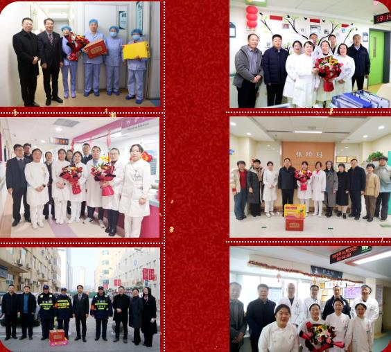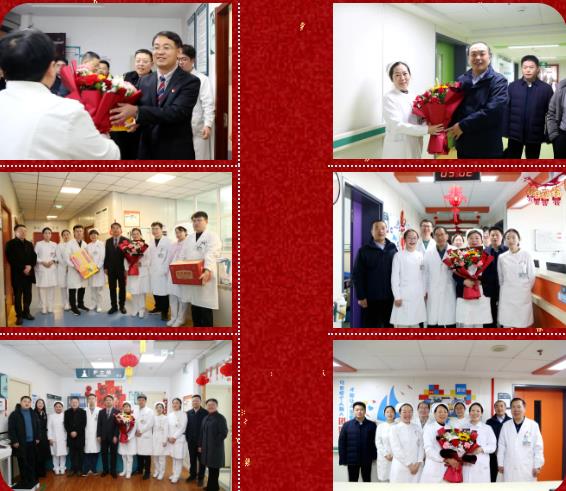 1月29日正值乙巳蛇年大年初一,漯河醫(yī)專二附院(漯河市骨科醫(yī)院、漯河市立醫(yī)院)黨委書記柴運洪、院長王齊超及院領(lǐng)導(dǎo)吳廣良、曹鵬克、鄭建新、劉國鋒、吳威等分別帶領(lǐng)各職能科室負(fù)責(zé)人深入各病區(qū)、各科室、陰陽趙分院等處看望慰問節(jié)日期間依然堅守崗位的廣大干部職工,為每一位堅守崗位的醫(yī)護人員和工作人員送上新春的美好祝福與誠摯的慰問。