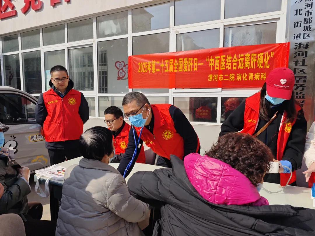3月18日是第25個“全國愛肝日”,今年全國愛肝日的主題是:中西醫(yī)結(jié)合,逆轉(zhuǎn)肝硬化。當(dāng)天,市二院組織消化腎病科專家、志愿者到海河小區(qū)開展義診宣傳活動,旨在提高居民對肝硬化、慢性病毒性肝炎、酒精性肝病、代謝相關(guān)脂肪性肝病等常見肝臟疾病的認(rèn)識,普及肝硬化的防治知識,倡議改善不良生活習(xí)慣、主動篩查、規(guī)范治療、定期隨訪,從而減少肝硬化的發(fā)生。