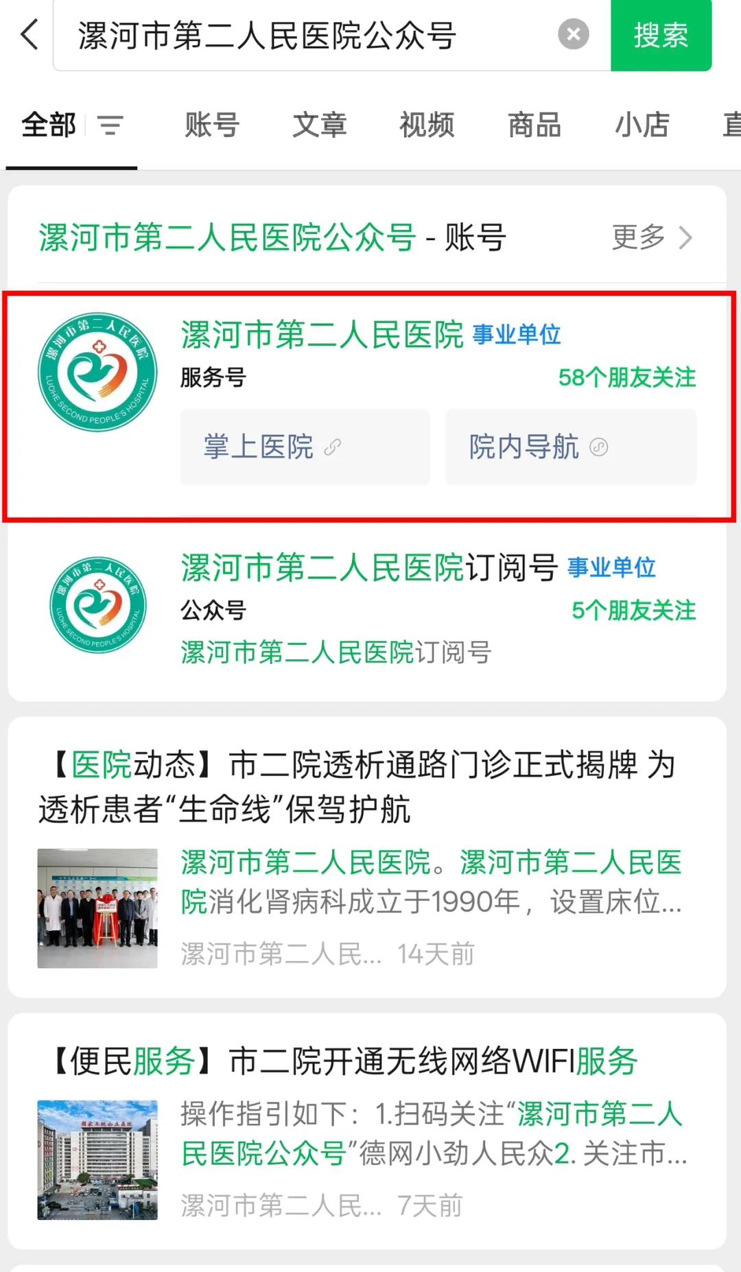 方法一:微信搜索“漯河市第二人民醫(yī)院”公眾號進(jìn)入主頁面,關(guān)注服務(wù)號之后,點擊醫(yī)療服務(wù)→豫健護(hù)理到家項目。