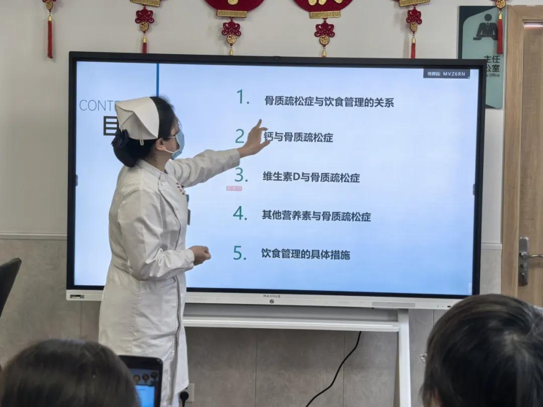 講座現(xiàn)場(chǎng),人們有序圍坐,氣氛熱烈而專(zhuān)注。智能微創(chuàng)骨科主管護(hù)師王露憑借豐富的專(zhuān)業(yè)知識(shí)與臨床經(jīng)驗(yàn),深入剖析骨質(zhì)疏松的成因與危害。從鈣、維生素D等關(guān)鍵營(yíng)養(yǎng)素對(duì)骨骼的構(gòu)建作用,到不同年齡段因身體機(jī)能差異而產(chǎn)生的特殊營(yíng)養(yǎng)需求,她絲絲入扣地為大家搭建起系統(tǒng)全面的骨骼健康知識(shí)框架。講解過(guò)程深入淺出,復(fù)雜的醫(yī)學(xué)知識(shí)變得通俗易懂。