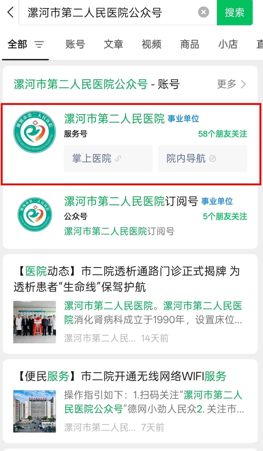 微信搜索“漯河市第二人民醫(yī)院”公眾號(hào)
