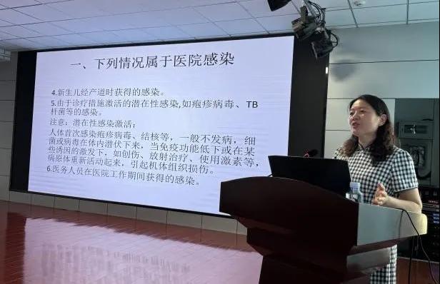 授課現(xiàn)場,感控科主任楚巧紅以《醫(yī)院感染診斷標(biāo)準(zhǔn)與案例分析》為題為近百名醫(yī)務(wù)人員進(jìn)行分享。楚巧紅主任結(jié)合多年臨床經(jīng)驗(yàn),以通俗易懂的語言、生動的案例,圍繞感染分類、感染的診斷原則、各部位醫(yī)院感染診斷、常見的醫(yī)院感染部位、醫(yī)院肺炎(NP)流行病學(xué)等內(nèi)容展開講解。重點(diǎn)剖析了多重耐藥菌感染、呼吸機(jī)相關(guān)肺炎等疑難案例的診斷流程。隨后,參會人員圍繞內(nèi)容及實(shí)際臨床工作中遇到的實(shí)際問題進(jìn)行提問,楚巧紅主任系統(tǒng)解答,反響熱烈。(盧 闖 韓書環(huán) 劉 旭 袁錦鈺)