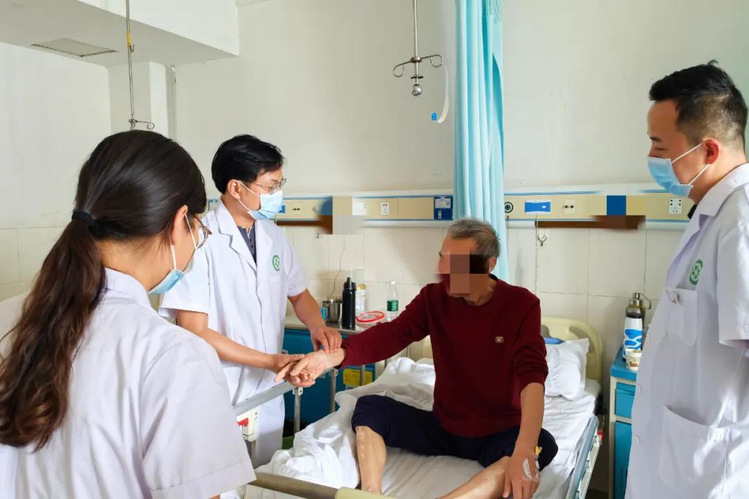 首先,李華華教授認(rèn)真聽取主管醫(yī)師針對(duì)疑難病例的病歷匯報(bào),查閱患者檢查資料,結(jié)合其臨床經(jīng)驗(yàn),就治療中出現(xiàn)的疑難點(diǎn)提出下一步合理化診療建議。隨后他來到病房,系統(tǒng)詢問患者此階段的身體狀況、體力及飲食情況,結(jié)合既往治療經(jīng)過,中醫(yī)四診合參,及時(shí)調(diào)整中西醫(yī)治療方案,為患者后續(xù)康復(fù)奠定基礎(chǔ)。