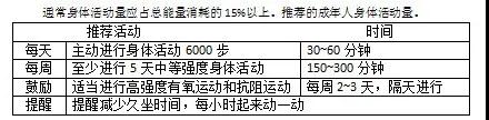 3.堅持日常身體活動,每周至少進行5天中等強度身體活動,累計150分鐘以上;主動身體活動最好每天6000步。