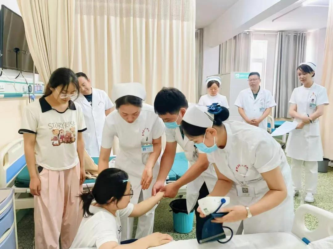 實戰(zhàn)模擬,檢驗應(yīng)急能力。演練在病房環(huán)境中有序展開。從護士巡視發(fā)現(xiàn)“患者”突發(fā)墜床,到第一時間啟動應(yīng)急響應(yīng)、評估傷情、實施初步救治、通知醫(yī)生、協(xié)助檢查、安撫患者及家屬,再到規(guī)范記錄、逐級上報,整個流程環(huán)環(huán)相扣。醫(yī)護人員反應(yīng)迅速、分工明確、協(xié)作緊密,充分展現(xiàn)了團隊在突發(fā)事件中的高效處置與人文關(guān)懷。