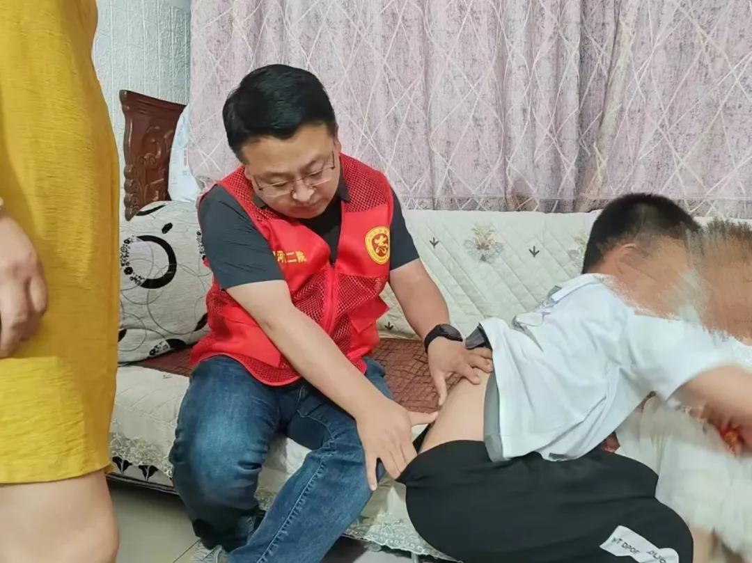 近日,市二院放療科團(tuán)隊(duì)再次來到小匯攏家中回訪。醫(yī)務(wù)人員仔細(xì)檢查了他的身體恢復(fù)情況,并叮囑日常注意事項(xiàng)??粗⒆踊畋膩y跳的樣子,誰也想不到,這個(gè)陽光少年曾因腫瘤壓迫脊髓而瀕臨絕境。