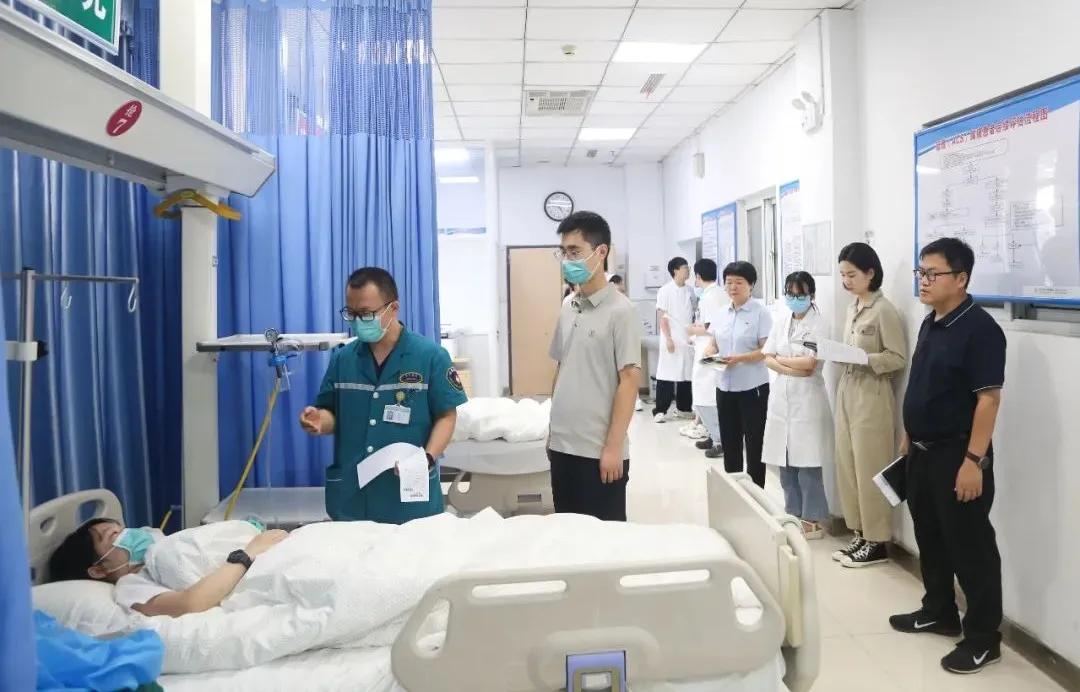 演練模擬場景:在醫(yī)院食堂就餐的患者、家屬及醫(yī)護(hù)人員中,多人出現(xiàn)在醫(yī)院餐廳就餐后陸續(xù)腹痛、腹瀉、嘔吐等疑似食物中毒癥狀。模擬救治過程中,急診醫(yī)學(xué)科醫(yī)護(hù)人員與前來支援的各科室人員緊密配合,有條不紊地對患者開展生命體征監(jiān)測、病情評估和臨床診斷、緊急救治等工作。多部門科室齊心協(xié)力,共同救治,確?;颊咴诙虝r(shí)間內(nèi)得到妥善處理。