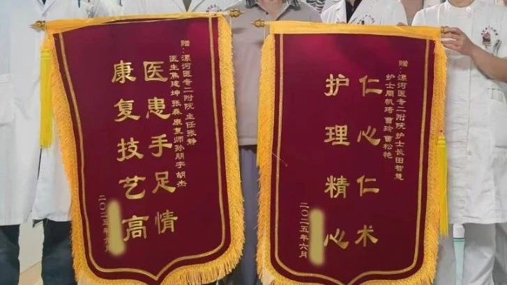 出院之際,患者特意送來(lái)兩面錦旗:一面寫給護(hù)理團(tuán)隊(duì),致謝“仁心仁術(shù),護(hù)理精心”;一面獻(xiàn)給醫(yī)生與治療師,感恩“醫(yī)患手足情,康復(fù)技藝高” 。這一面面的錦旗,是認(rèn)可,更是康復(fù)醫(yī)學(xué)科“以患者為中心”的生動(dòng)寫照。