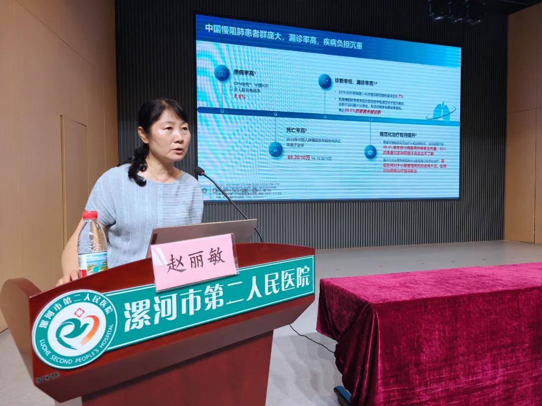 本次培訓(xùn)特邀中華醫(yī)學(xué)會呼吸病學(xué)專家,河南省人民醫(yī)院趙麗敏教授進行授課。趙麗敏教授以“雙支擴劑在慢性阻塞性肺疾病(COPD)中的規(guī)范化診療”為題,結(jié)合河南省慢阻肺流行病學(xué)調(diào)查中的大數(shù)據(jù),系統(tǒng)闡述了慢阻肺的早期篩查、階梯化治療和長期管理策略,她著重指出:“基層醫(yī)療機構(gòu)是慢阻肺防控的第一道防線,推行肺功能檢查普及、建立患者分級隨訪體系是改善預(yù)后的關(guān)鍵。”并強調(diào)了“像測血壓一樣測肺功能”的早篩意識,真正實現(xiàn)“防重于治”的目標。