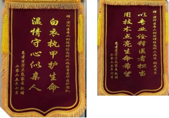 “你們不僅關(guān)注我的病情變化,更用溫暖的笑容和貼心的言語緩解了我的焦慮,讓我感受到醫(yī)者仁心的力量。”康復(fù)出院后,患者及家屬攜錦旗與感謝信再次來到醫(yī)院,他們把“以專業(yè)詮釋醫(yī)者擔當 用技術(shù)點亮生命希望”、“白衣執(zhí)甲護生命 溫情守心似親人”這樣的贊譽送給醫(yī)護人員,表達著對醫(yī)護團隊的認可,也彰顯了醫(yī)院多學(xué)科聯(lián)合會診機制,院前急救、院內(nèi)急診、院內(nèi)救治全流程閉環(huán)管理的顯著優(yōu)勢。