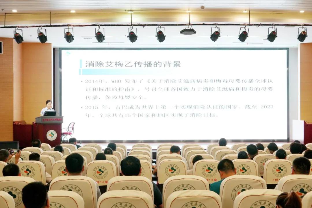 圍產(chǎn)保健科張秀麗醫(yī)生圍繞《消除艾滋病、梅毒、乙肝母嬰傳播,共筑健康未來》講課,講述了消除艾梅乙母嬰傳播的意義、消除艾梅乙傳播的各項指標、孕期及產(chǎn)后如何預(yù)防及阻斷艾梅乙、艾梅乙寶寶出生后喂養(yǎng)方式以及我院消除艾梅乙母嬰傳播免費服務(wù)項目等內(nèi)容。詳細講解了艾梅乙預(yù)防措施,包括孕期規(guī)范檢測與治療、安全助產(chǎn)服務(wù)、新生兒干預(yù)治療等關(guān)鍵環(huán)節(jié),為參會人員傳授了實用的防控知識和技能。