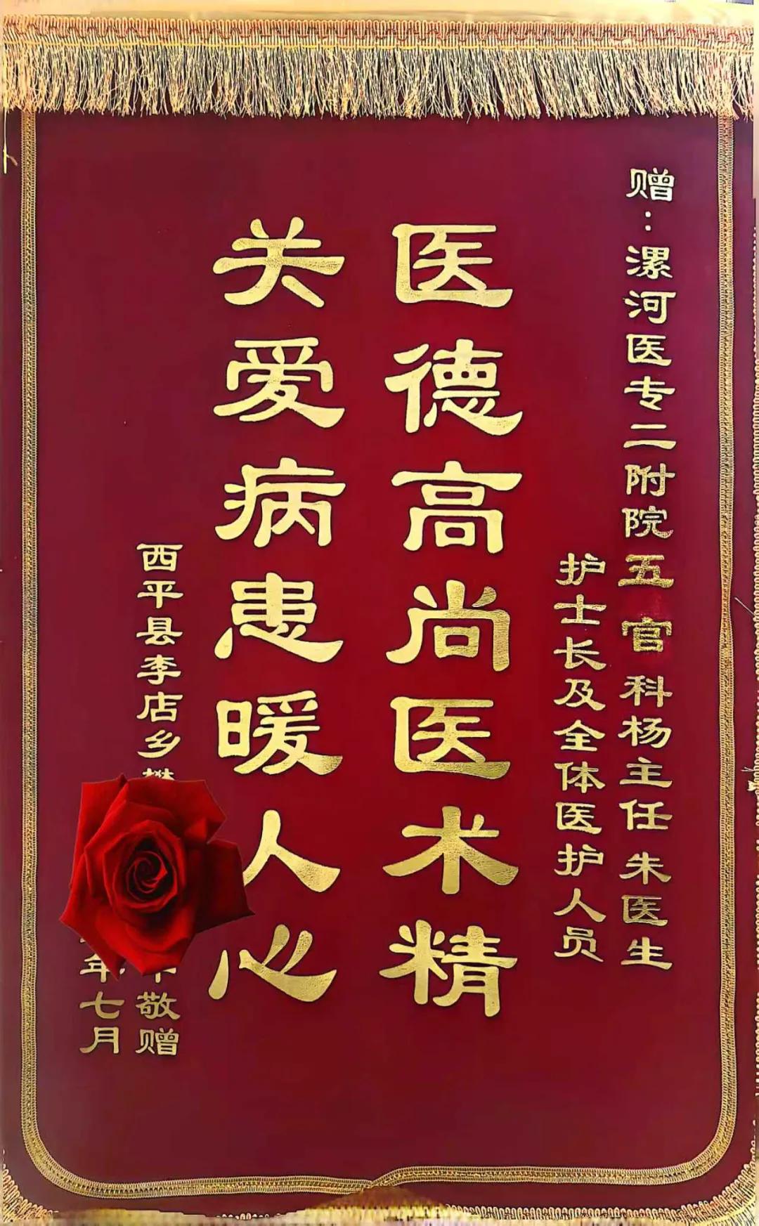 出院那天,患者執(zhí)意將一面錦旗送到五官科。錦旗上"醫(yī)德高尚醫(yī)術精,關愛病患暖人心"十四個金色大字,在陽光下熠熠生輝。他顫抖著雙手,將錦旗鄭重交到楊志強主任手中:"謝謝你們,不僅保住了我的眼睛,更保住了一個老兵的尊嚴。"(盧 闖 尹姿文 劉 旭 袁錦鈺)
