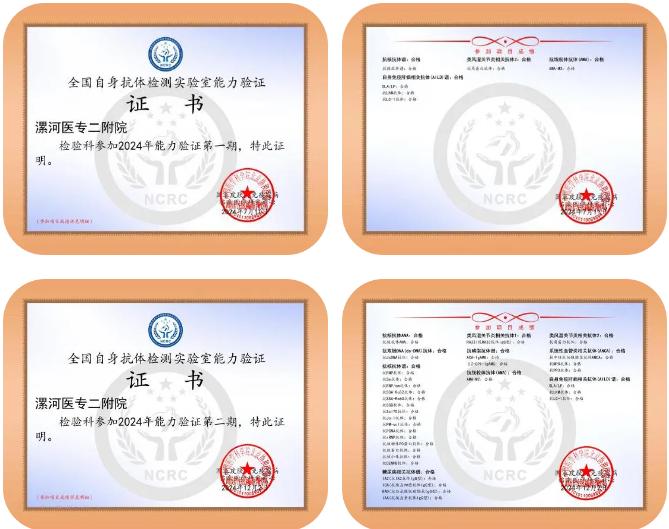 近日,漯河醫(yī)專二附院(漯河市骨科醫(yī)院、漯河市立醫(yī)院)檢驗(yàn)科自身免疫實(shí)驗(yàn)室在“國家皮膚與免疫疾病臨床醫(yī)學(xué)研究中心(NCRC)”組織的、北京協(xié)和醫(yī)院牽頭的全國自身抗體檢測(cè)實(shí)驗(yàn)室能力驗(yàn)證中,再次憑借卓越的檢測(cè)能力和穩(wěn)定的技術(shù)水平,斬獲合格證書。這已經(jīng)是自2023年以來,連續(xù)3年獲此殊榮,充分說明了醫(yī)院自身免疫實(shí)驗(yàn)室的檢測(cè)結(jié)果與全國251家實(shí)驗(yàn)室數(shù)據(jù)高度一致,達(dá)到國家級(jí)標(biāo)準(zhǔn)化水平,為臨床診斷提供了堅(jiān)實(shí)可靠的依據(jù)。