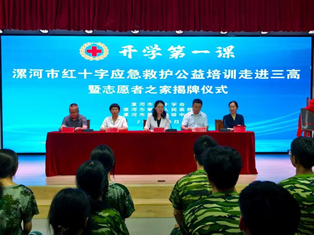 8月21日上午,漯河市紅十字應(yīng)急救護(hù)公益培訓(xùn)進(jìn)校園暨志愿者之家揭牌儀式在市第三高級(jí)中學(xué)舉行,市紅十字會(huì)黨組書記、常務(wù)副會(huì)長孫潁華,市教育局黨組成員、副局長郭俊偉,市二院黨委副書記、院長胡海英,市紅十字會(huì)黨組成員、副會(huì)長李世杰,市二院紅十字志愿服務(wù)隊(duì)代表、漯河三高紅十字應(yīng)急救護(hù)社團(tuán)師生代表等參加本次活動(dòng)。