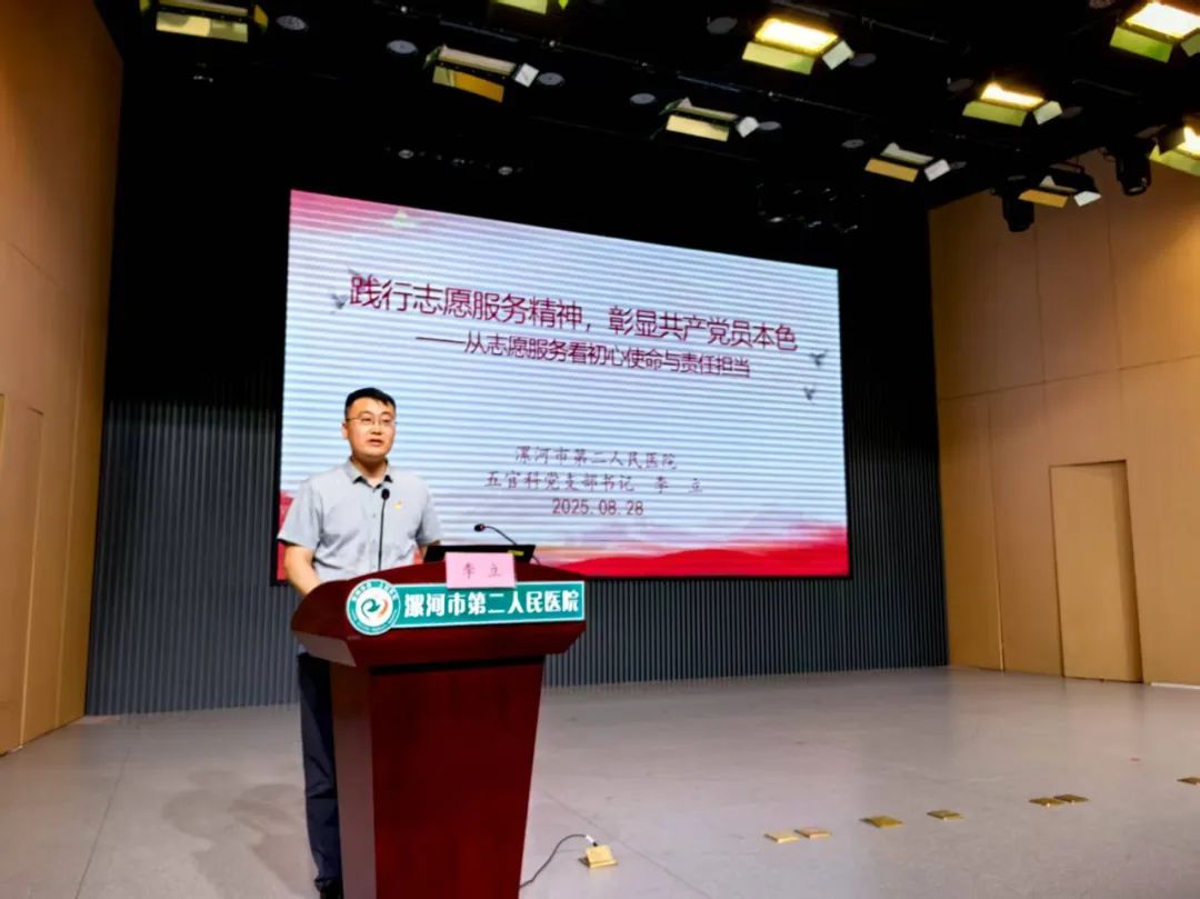 市二院五官科黨支部書記李立以《踐行志愿服務(wù)精神,彰顯共產(chǎn)黨員本色——從志愿服務(wù)看初心使命與責(zé)任擔(dān)當(dāng)》為題,從志愿服務(wù)是黨員必修課、志愿服務(wù)中的黨性密碼、黨員志愿服務(wù)實踐路徑、志愿服務(wù)是黨性修養(yǎng)實踐等4個方面,結(jié)合醫(yī)院大量的志愿服務(wù)實例,講述了市二院黨委如何通過“一支部一品牌”活動的開展來發(fā)揮黨支部的戰(zhàn)斗堡壘作用和黨員的先鋒模范作用。