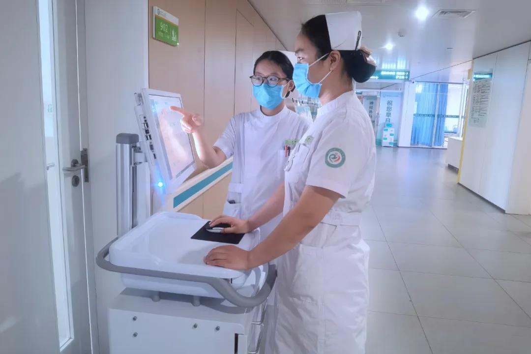 一臺臺新型移動“智能護理車”穿梭在病房間,不同于以往笨重的手推車,它集治療、護理、電腦于一體,既可以放置病人藥物與基本護理器材等滿足日常護理需求,又實現(xiàn)了護理人員隨時隨地查看患者信息、治療項目、書寫護理文書等多項功能,省時省力、便捷高效,有效減輕了護士負擔,真正做到了把時間還給護士,把護士還給病人。