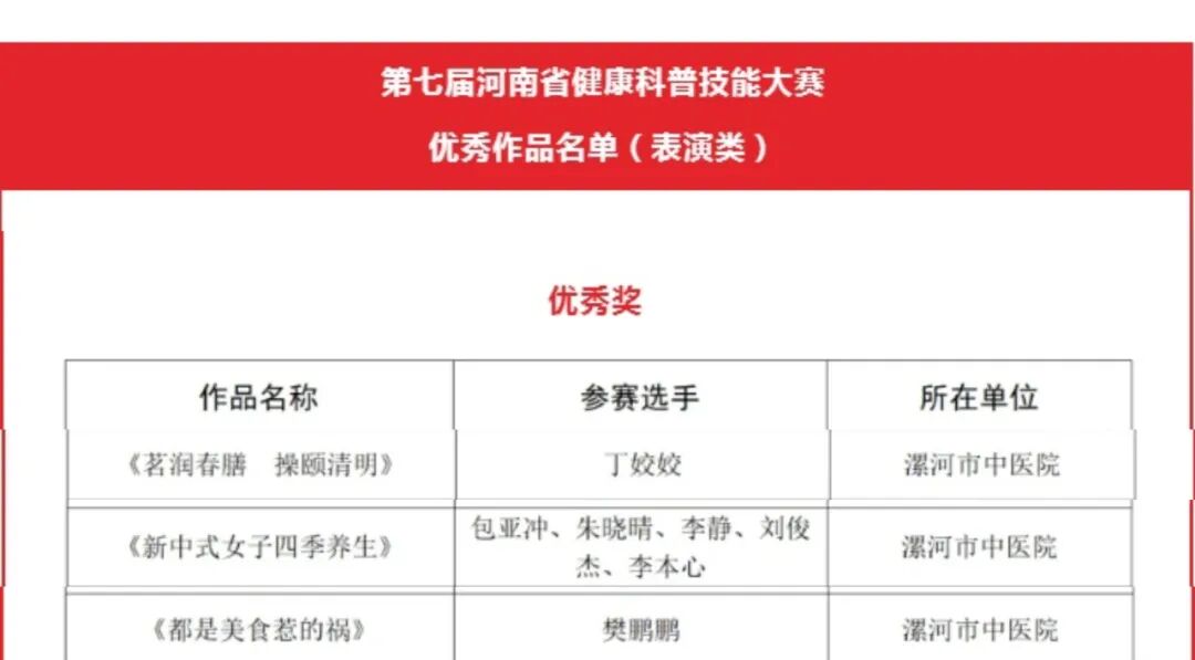 獎獎獎來了——漯河市中醫(yī)院在第七屆河南省健康科普技能大賽中斬獲佳績