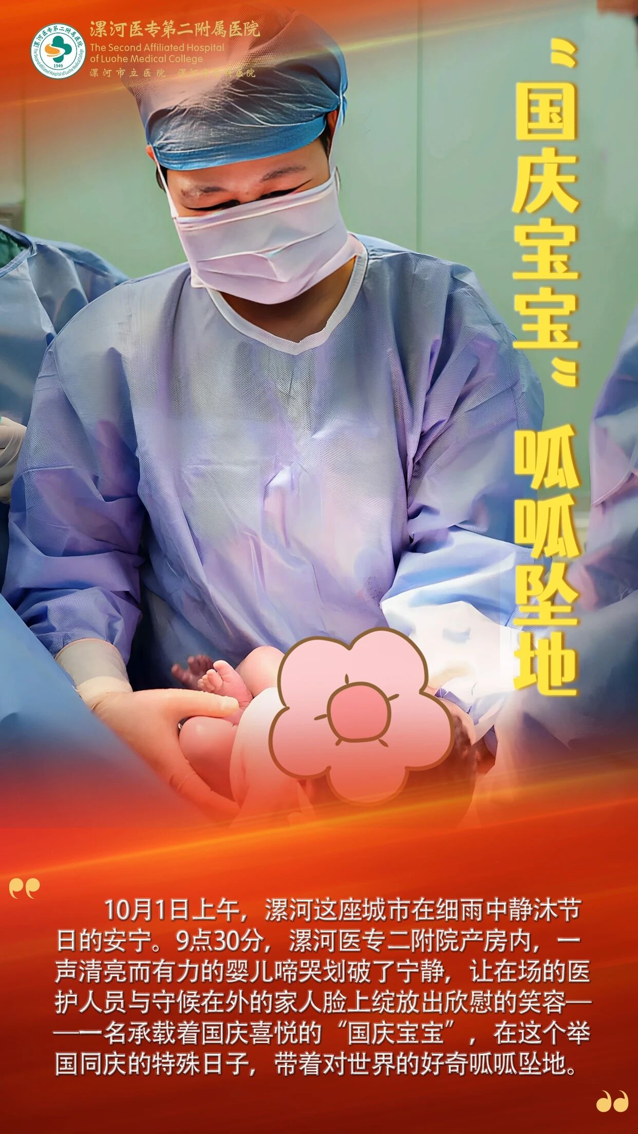 10月1日上午,漯河這座城市在細(xì)雨中靜沐節(jié)日的安寧。9點(diǎn)30分,漯河醫(yī)專二附院產(chǎn)房內(nèi),一聲清亮而有力的嬰兒啼哭劃破了寧靜,讓在場的醫(yī)護(hù)人員與守候在外的家人臉上綻放出欣慰的笑容——一名承載著國慶喜悅的“國慶寶寶”,在這個(gè)舉國同慶的特殊日子,帶著對(duì)世界的好奇呱呱墜地。