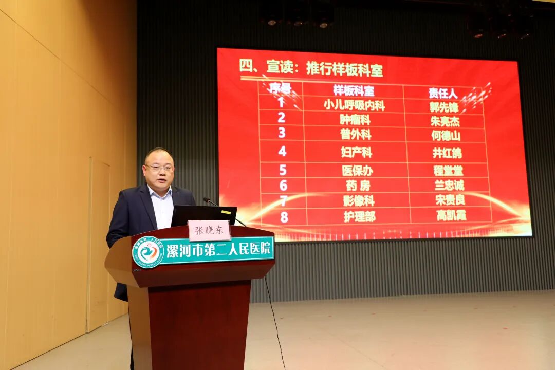 黨委副書記、院長胡海英宣布漯河市第二人民醫(yī)院8S精益管理項目正式啟動,標志著醫(yī)院在精益管理升級之路上邁出關(guān)鍵一步,全場響起熱烈掌聲。